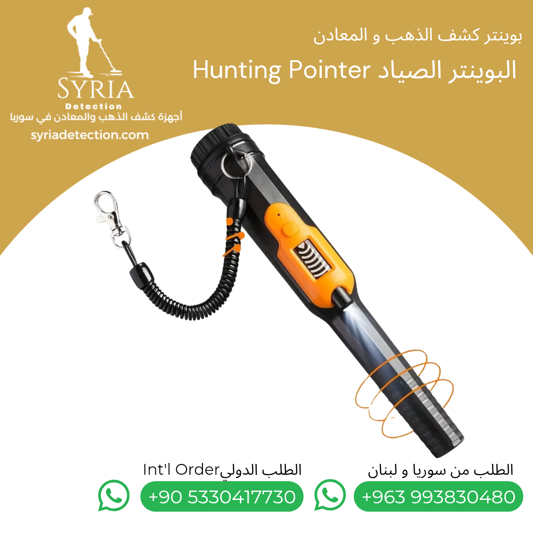 اختَر جهاز البوينتر الصياد Hunting Pointer اليدوي المتطور لتحديد المعادن بدقة عالية في الميدان، فهو الأداة المثالية للمستكشفين والباحثين عن الكنوز في سوريا وما حولها. هذا الجهاز يُعد من أفضل أجهزة كشف الذهب والمعادن في سوريا بفضل أدائه الموثوق والمزايا المتقدمة.